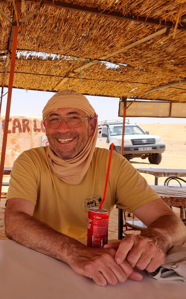 Ich bin 1963 geboren, glücklich verheiratet, habe drei verheiratete Kinder und sechs Enkel. Wie so viele, sind meine Frau und ich vom Reisefieber befallen. Die Reise unseres Lebens war 2016/2017 mit unserem geliebten Defender von Karlsruhe nach Kapstadt – über den Orient nach Afrika. Seit 2018 habe ich mich im Vorstand als Beisitzer engagiert. Da mir das Vereinsleben nicht fremd ist, bin ich für das allgemeine Vereinsrecht, Satzungsfragen und den Datenschutz zuständig. 2026 habe ich das Amt des 2. Kassenwarts und die Mitgliederverwaltung übernommen, das ich gemeinsam mit Birte ausüben werde. Hierzu gehört auch der Versand des Sahara-Infos.